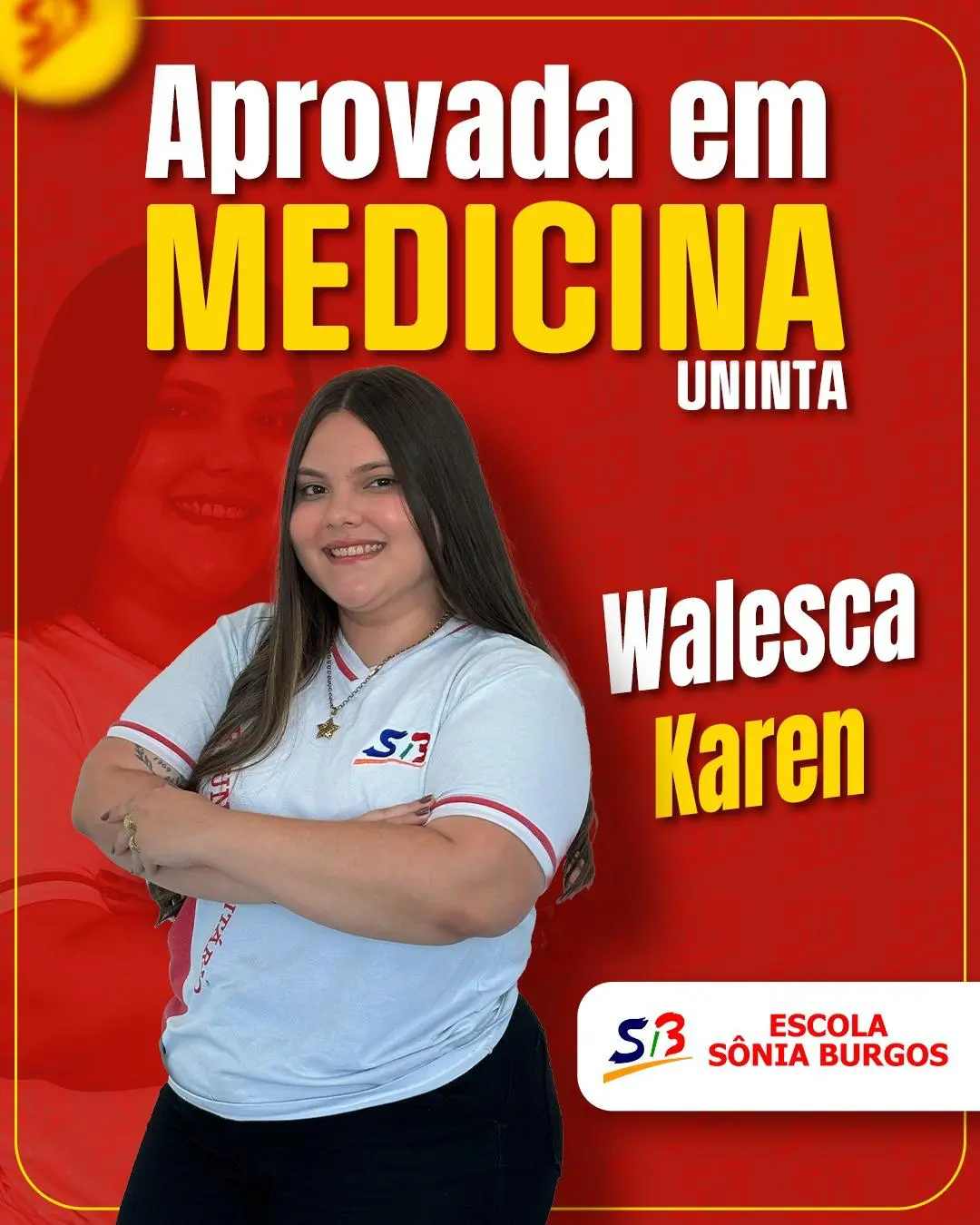 Parabéns, Walesca Karen, pela sua aprovação no vestibular de MEDICINA na UNINTA! 🎓📚