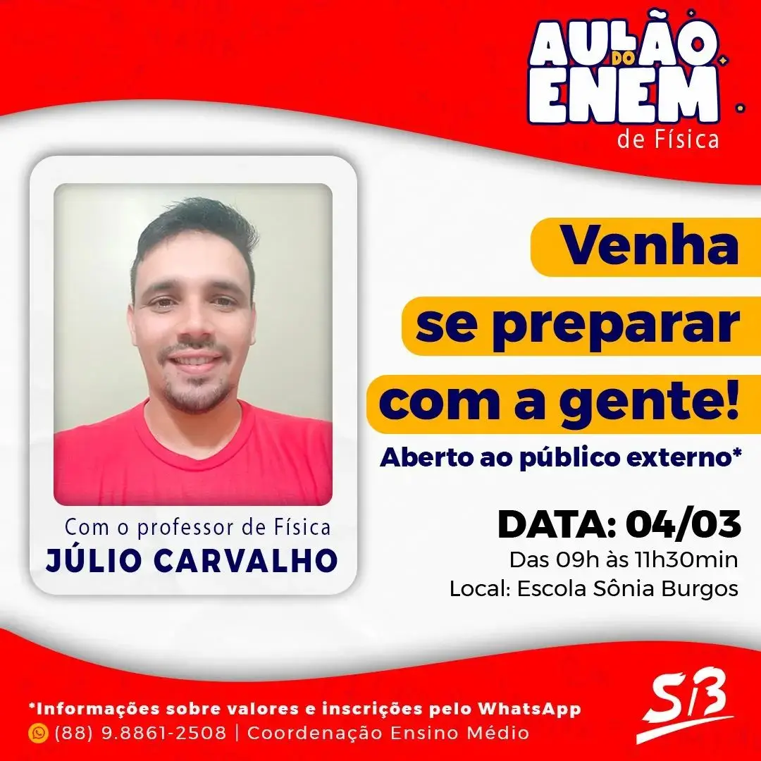 O nosso primeiro Aulão terá como foco a disciplina de Física, com resolução de questões no estilo ENEM e com dicas que valem ouro.