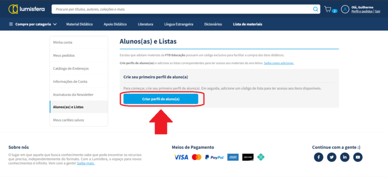 Clique no botão “Criar perfil de aluno(a)”.
