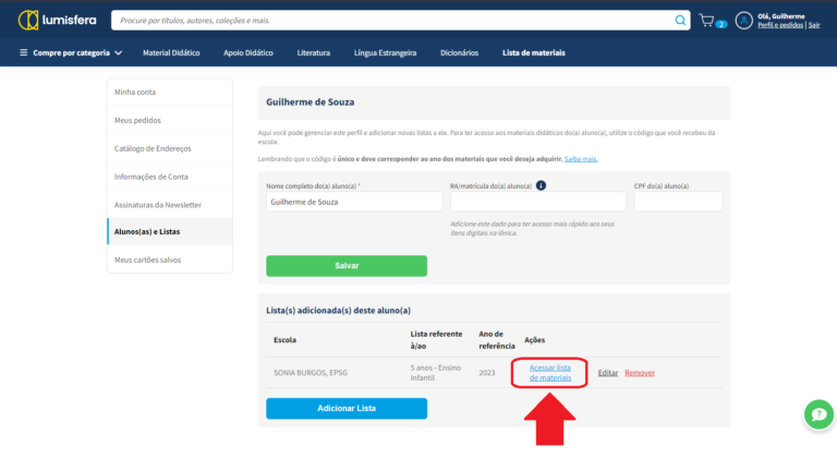 Nesta página, clique no link “Acessar lista de materiais”.