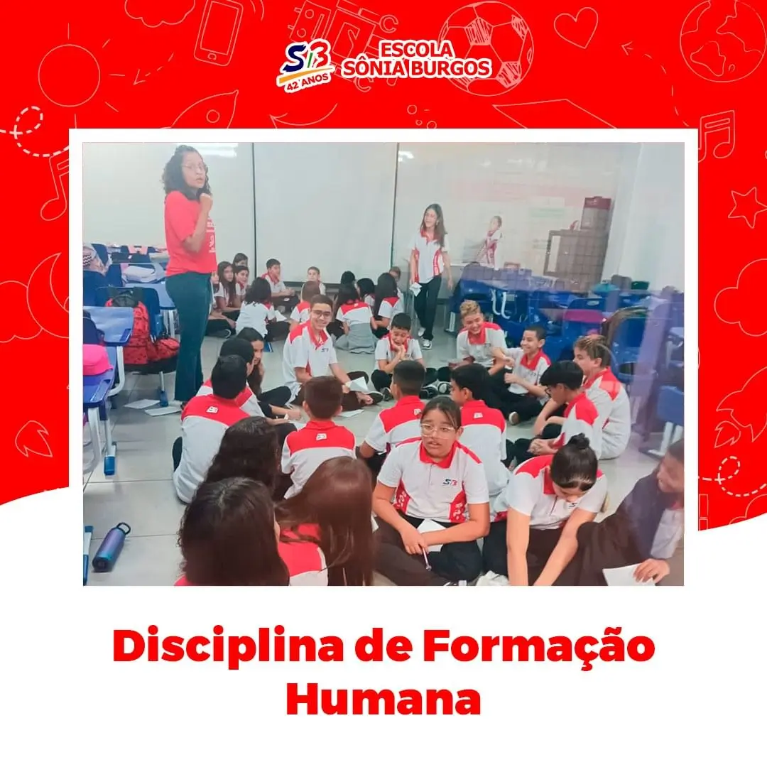 Em nossa grade de aulas temos a disciplina de Formação Humana com a professora e psicóloga Ana Karine, que leva aos nossos alunos do fundamental II a integralidade do ser e pensar de cada indivíduo no mundo, preparando-os para a vida em grupo e sociedade, auxiliando assim os nossos educandos em sua formação em seres críticos capazes de trilhar seus caminhos.
