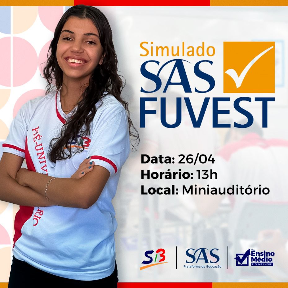 ✅ A 1ª fase do Simulado SAS FUVEST será composta por 90 questões objetivas e versará sobre o conjunto das disciplinas do núcleo comum obrigatório do Ensino Médio: Português, História, Geografia, Matemática, Física, Química, Biologia e Inglês e, também, questões interdisciplinares.